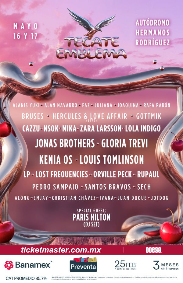 Tecate Emblema 2026: un festival sin etiquetas que reúne a Jonas Brothers, Gloria Trevi, Kenia OS, Louis Tomlinson y más en el Autódromo Hermanos Rodríguez