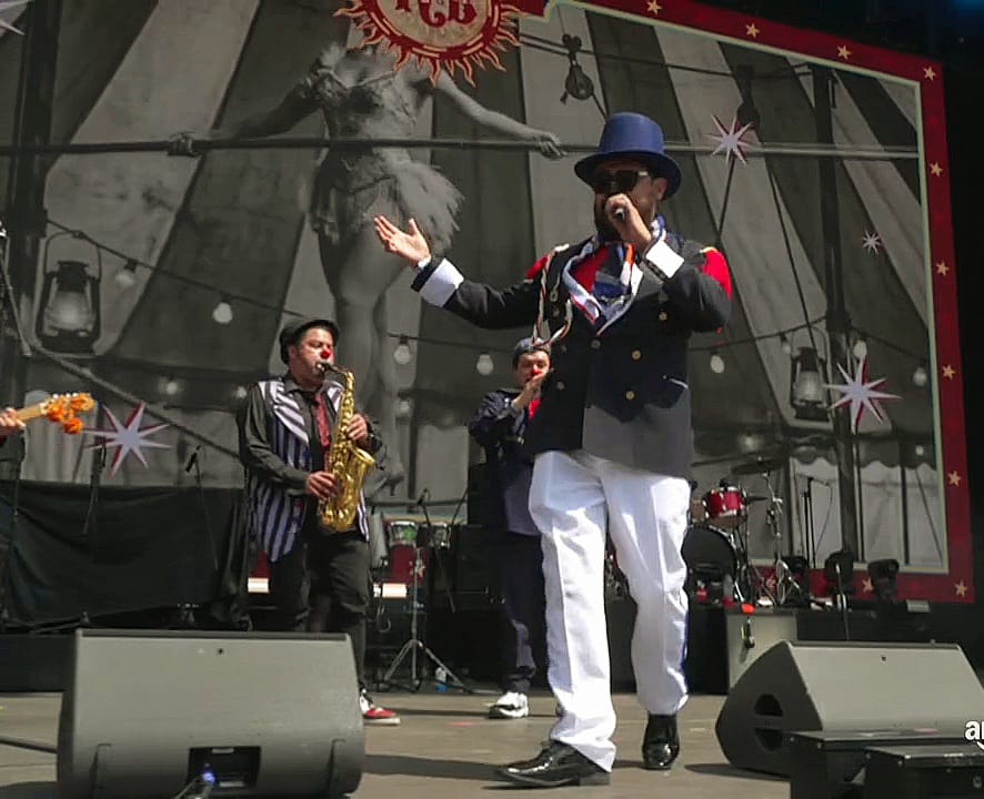 La tarde arrancó con la energía carnavalesca de Triciclo Circus Band (14:15, Escenario Amazon Music). Con su fusión de ritmos del mundo —balkan, klezmer, tango, jazz y polka— y su estética teatral, transformaron el escenario en un circo musical que contagió alegría desde los primeros minutos. Aunque el público aún estaba llegando, los asistentes tempraneros disfrutaron de un espectáculo vibrante y colorido.