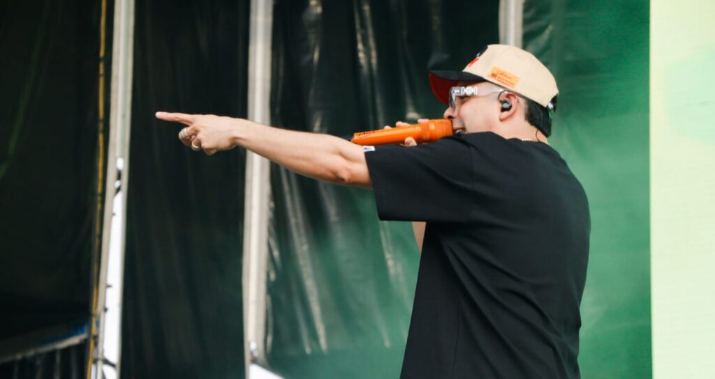 Lo que ocurrió durante su presentación no dependió de grandes artificios visuales ni de efectos desmedidos. El peso estuvo en el repertorio y en la respuesta del público. Cada línea fue acompañada, cada pausa respetada y cada beat amplificado por una audiencia que no se limitó a observar, sino que participó activamente en la construcción del momento.
